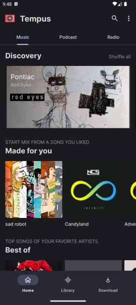 Tempus is an open-source and lightweight music client for Subsonic, designed and built natively for Android. It provides a seamless and intuitive music streaming experience, allowing you to access and play your Subsonic music library directly from your Android device.