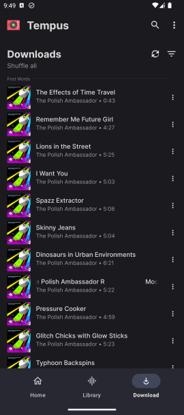 Tempus does not rely on magic algorithms to decide what you should listen to. Instead, the interface is built around your listening history, randomness, and optionally integrates with services like Last.fm to personalize your music experience.