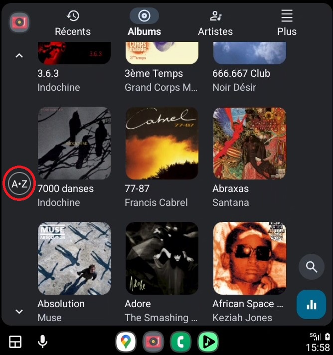 The A-Z button allows you to jump to items starting with the chosen letter.