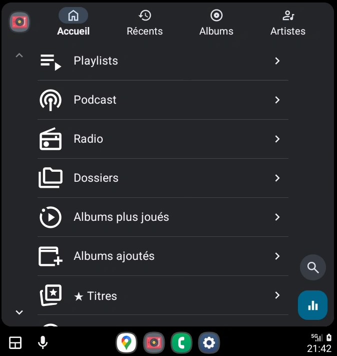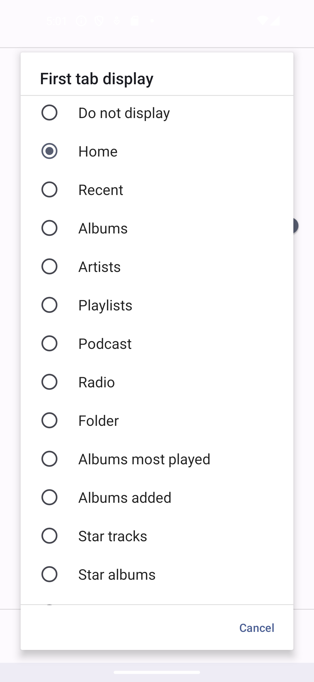 - Albums (Last played, Most played, Recently added, Artists, Star tracks, Star albums, Star artists, Random)