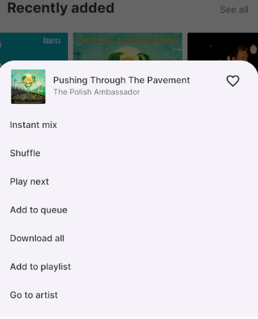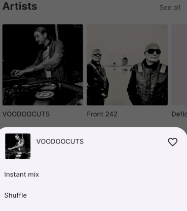 - Long pressing on an artist cover gets you the same access to to heart/unheart an album