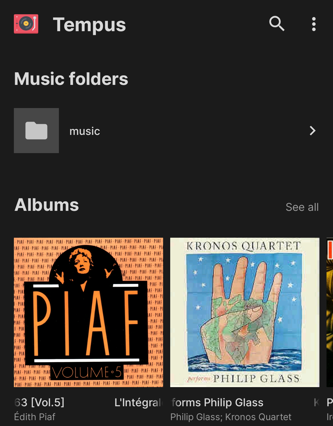 - When viewing inner folders or artist index entries, tap the new play button to immediately enqueue every audio track inside that folder/index and all nested subfolders.